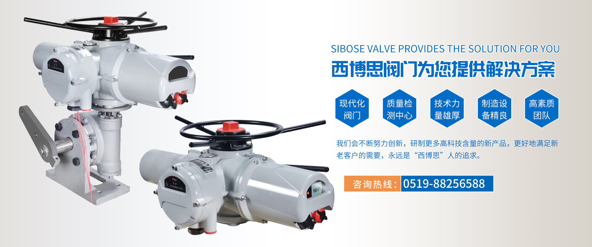 江蘇西博思閥門科技有限公司是一家專業從事各類電動執行器,電動閥門集研發、生產、銷售、服務于一體的技術型企業。產品功能齊全、性能可靠、控制系統先進、使用維護方便,被廣泛應用于電力、冶金、石油、煤炭、化工、造紙、自來水、污水處理、 物聯網農田灌溉等。產品質量穩定可靠,受到廣大用戶的普遍贊譽。